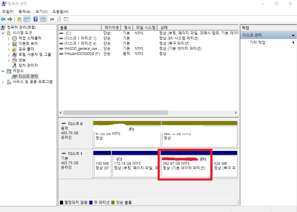 다음은 '파티션 합치기'에 대해 포스팅하도록 하겠습니다.